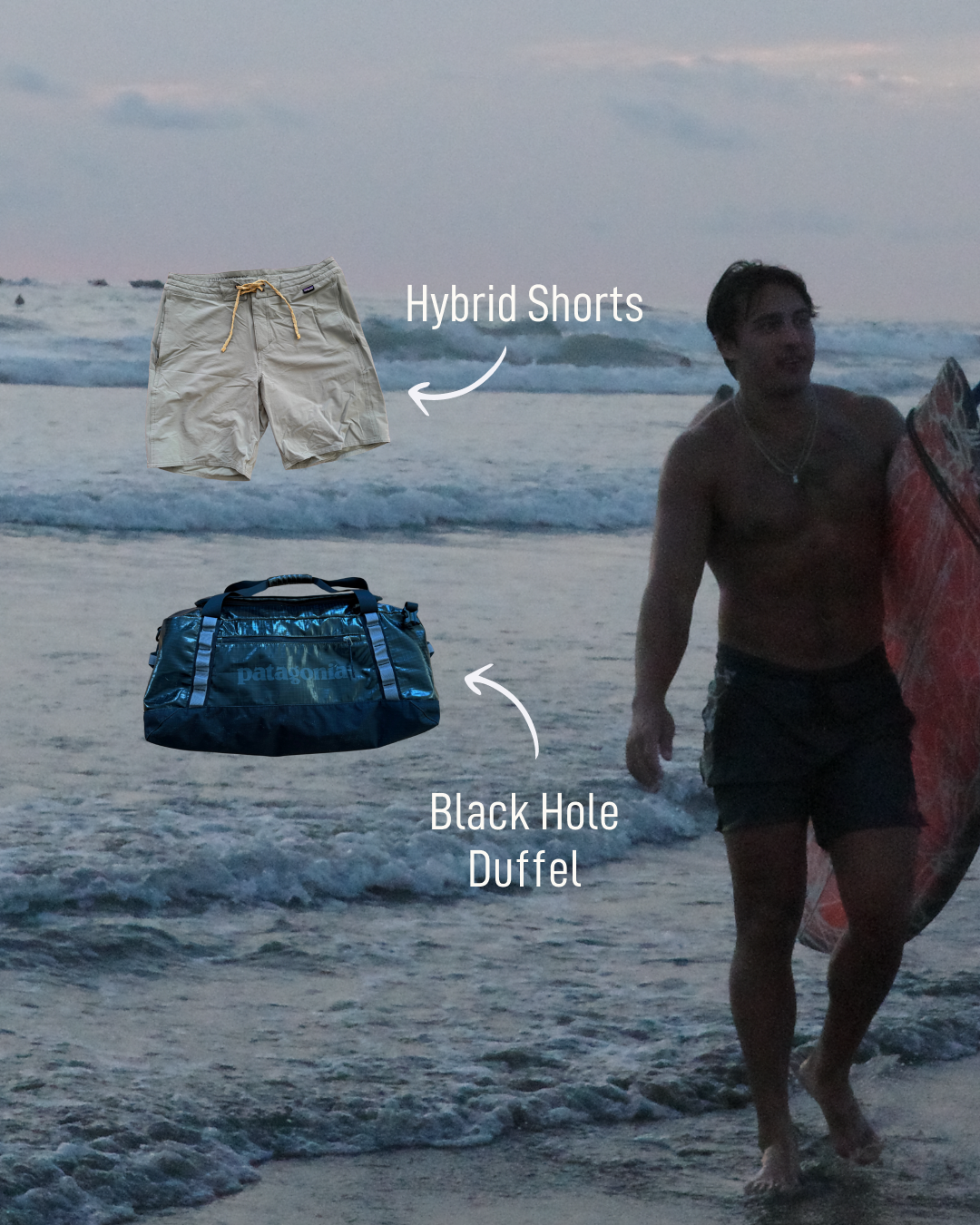 I'm on year seven with my Black Hole duffel, and it's still in the rotation; that tells you everything you need to know. Along with some other pieces like the M10 Storm Jacket (made of recycled fish net), hybrid shorts, and a pair of trail running shorts. On my most recent trip to Nosara, Costa Rica, the Black Hole and those shorts came with me. Wore the shorts nearly every day. They’re not flashy, but they last.